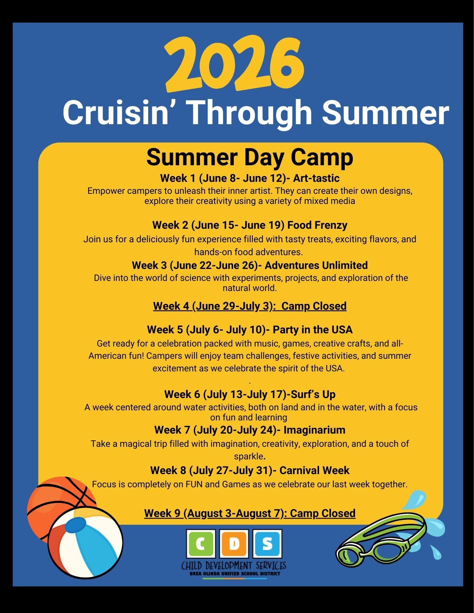 Camp will start on June 8 and run through July 31st. See the flyer below for details.